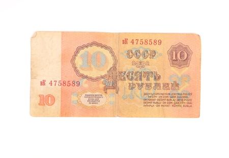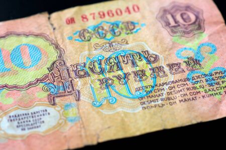 The old Soviet banknote ten rubles close up