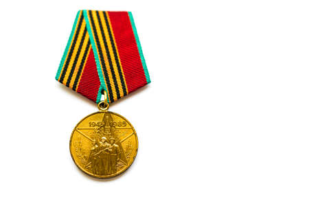 Moscow, Russia - Feb 06, 2020.: Soviet metallic badge Isolated on the white background