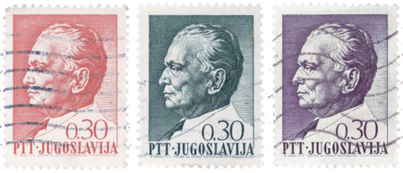 Three different vintage stamps of Josip Broz Tito, former Yugoslav communist revolutionary dictator