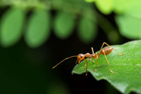 ant on green leaf in the nature or in the garden. macro