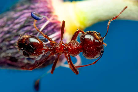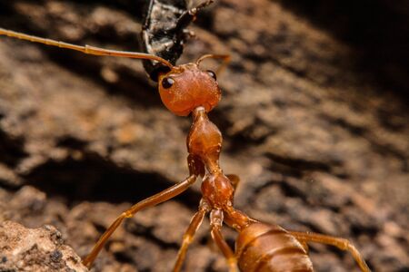 Macro of red ant or fire ant in nature.