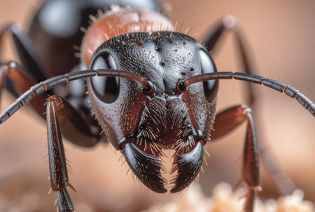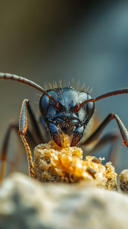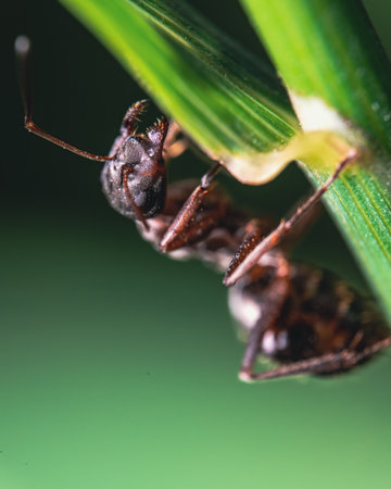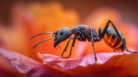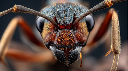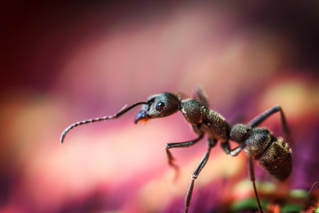Experience a vivid close-up of an ant showcasing incredible detail in its texture and colors, revealing the fascinating world of insects with macro photography.