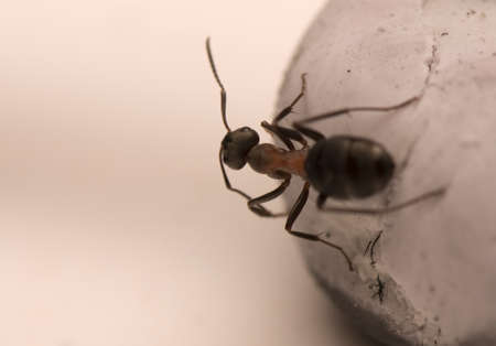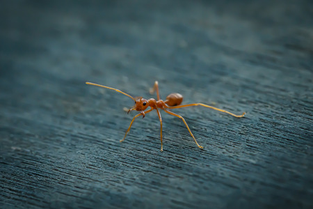 Macro of ant on a wooden surface. Shallow depth of field.