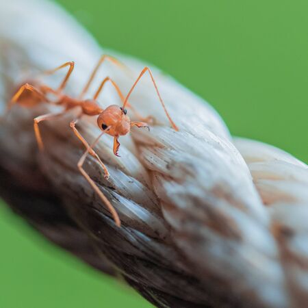 A closeup shot of an ant walking on a rope