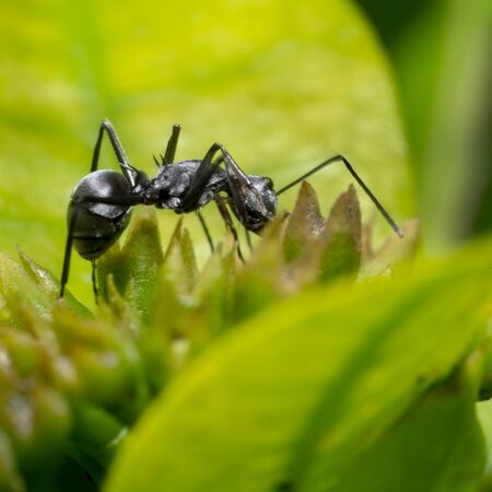 black ant in green nature or in the garden