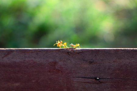 Vintage style, Ants are eating a died ant on wood floor background