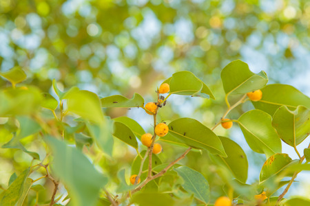 Close up of banyan fruits in plant.