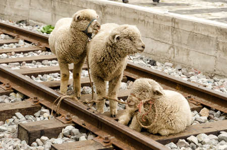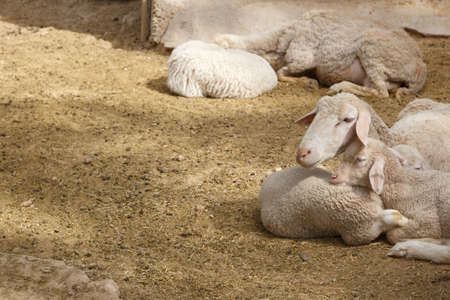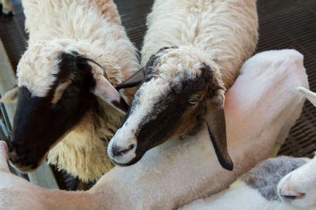 white sheep in stables show up it head to wait for people feed them with light ray