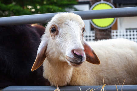 white sheep in stables show up it head to wait for people feed them