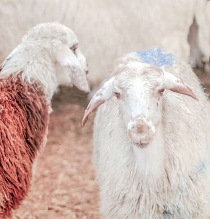 Sheep in a farm. Selective focus with shallow depth of field.