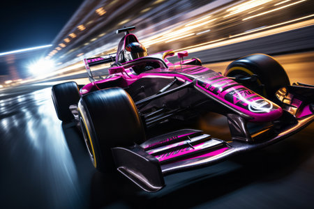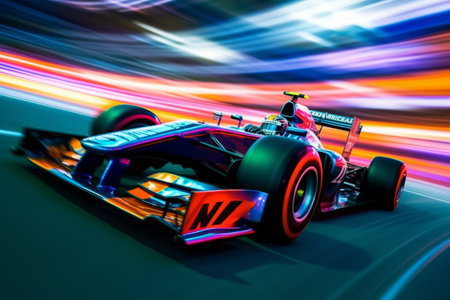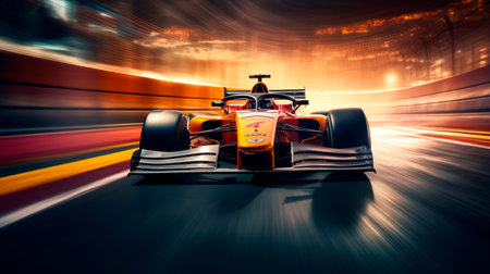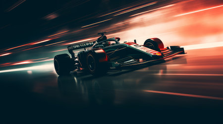 A formula car with motion blur, suggesting high speed on the racetrack. Generative AI