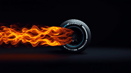 A close-up view of a racing tire emitting sparks during a high-speed motorsport event. The dynamic atmosphere showcases the energy and excitement of competitive racing.