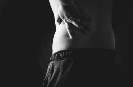 severe back pain. the man holds on to his back