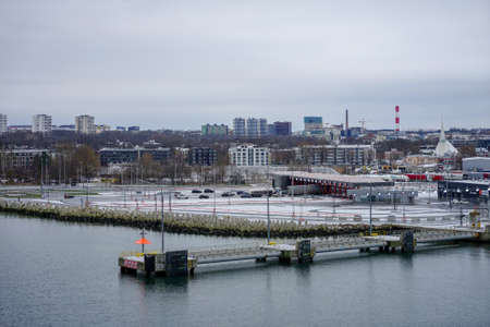 TALLINN, ESTONIA - DEC 31.2018 View of city Tallinn Estonia and cruises ships, from Baltic sea