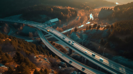 Generative AI : Aerial view of the highway crossing the valley with mountains at sunset Terni Umbria Italy
