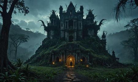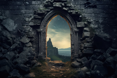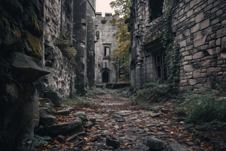Spooky ancient ruin, abandoned and damaged, a mystery in nature generated by artificial intelligence