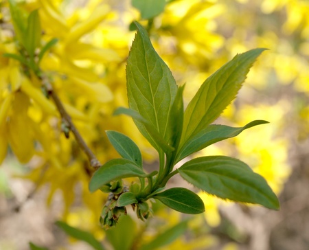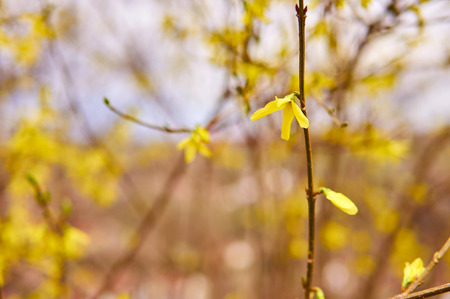 Close-up macro shot of vivid Forsythia plant early in the spring