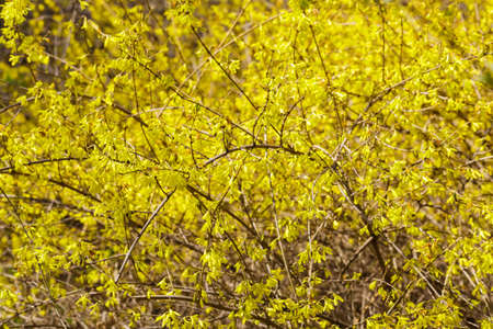 Forsythia yellow spring shrub with wonderful small flowers outdoors