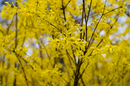 Forsythia, a shrub with yellow flowers from the oleaceae family at springtime