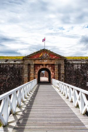 Bridge to the entrance of the 18thC Fort George, near Inverness, built after the Jacobite rising of 1745, Highland, Scotland, UK