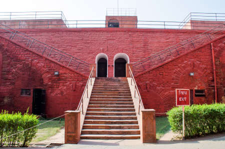 Staircase inside the Red Fort in Delhi India, leading up to the platform where the Prime Minister would give speeches