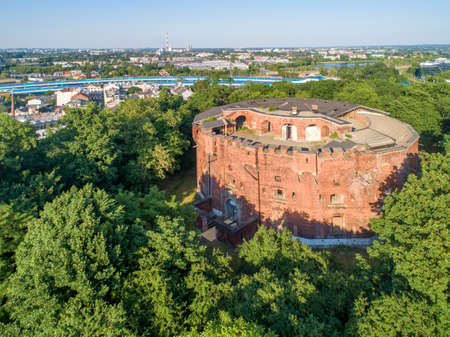 St. Benedict Fort 31 in Podgorze district in Krakow, Poland. Built 1853–1856. Surrounded by trees, presently under renovation. Aerial view