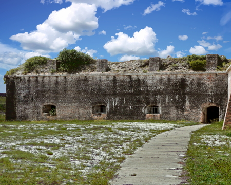 Fort Pickens structure located near Pensacola, Florida, USA. Beautiful weathered brick arches at scenic historic tourist destination location. Recreational sightseeing activity when visiting Gulf Coast beaches.