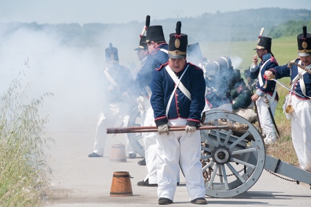 Vitoria, Spain- June 22, 2013: Re-enactment of the battle of Vitoria between British, Portuguese and Spanish army under General Wellington and the French army in 1813