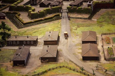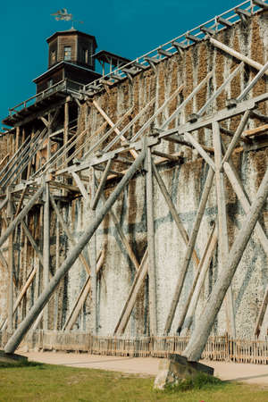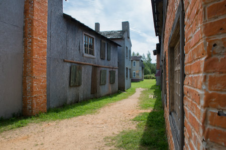 Moscow region, Cinema town Piligrim Porto, August 5, 2020: Wooden scenery of the old city for filming feature films