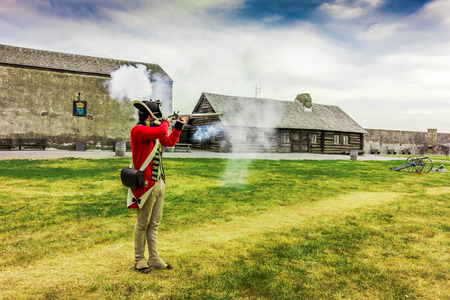 TORONTO – JUNE 17, 2017: Soldiers at the battle of Black Creek revolutionary war re-enactment in Black Creek Pioneer village in June 17, 2017 in Toronto, Canada
