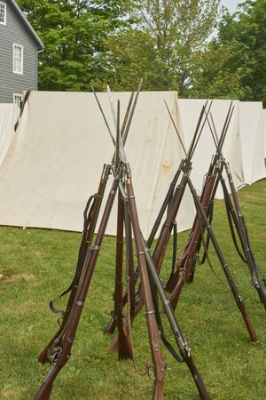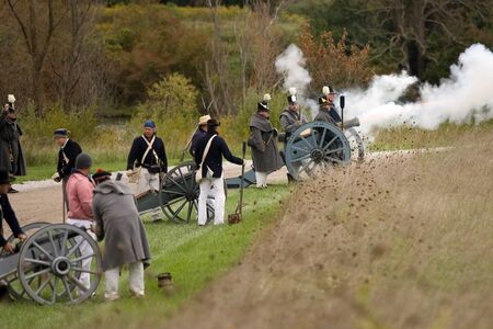 London, Ontario - October 1, 2011: The war of 1812 is re-enacted on the grounds of Fanshaw Conservation Area in London. Over the course of the weekend, five individual battles are carried out throughout the park.