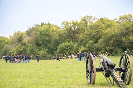 Selective focus on a confederate artillery cannon at the Civil War Days in Canton, South Dakota