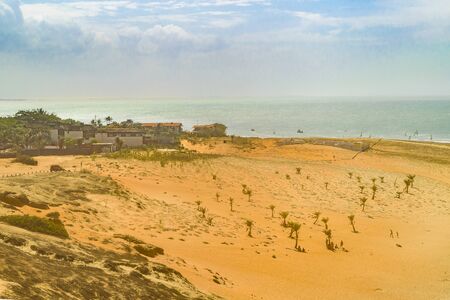 Aerial view of praia malhada beach from top of dune at Jericoacoara National Park, Brazil