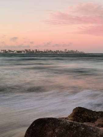 Fortaleza Beach with tall buildings in Ceara state, Brazil - vintage look