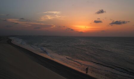 Beautiful sunset on a sand dune in Jericoacoara in Brazil