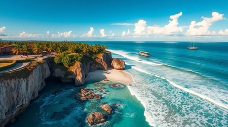 AI Generated. Scenic Aerial View of Azure Water and Coastal Cliffs on a Sunny Day