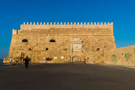 View of the fortress Castello a Mare (Koules) in Herakleio of Crete in Greece. The Castello a Mare (Koules) is a fortress located at the entrance of the old port of Heraklion, Crete, Greece. It was built by the Republic of Venice in the early 16th centur