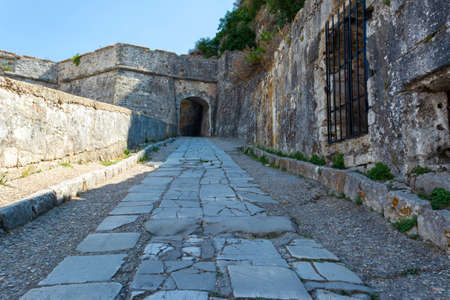 fortress on the island of Corfu, Historic center of Kerkyra town on the island of Corfu in Greece, stone stairs Inside old fortress, Kerkyra