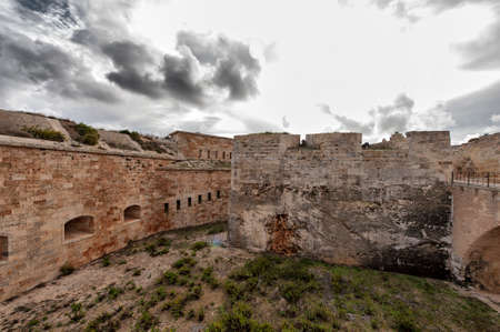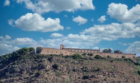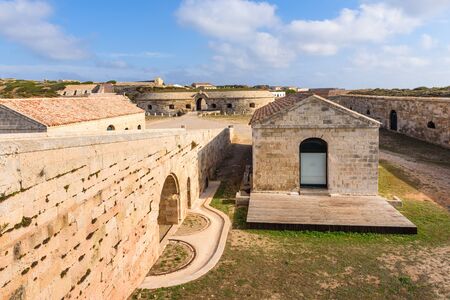 Menorca, Spain - October 13, 2019: La Mola, fortress of Isabel II in Mahon. One of the biggest European fortresses built in the 19th century