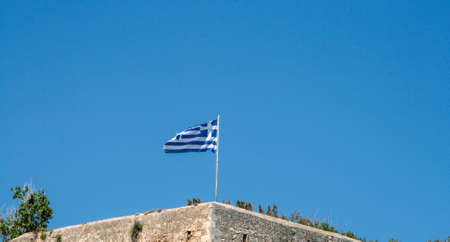 Greek flag on Rethymno castle, Crete, Greece