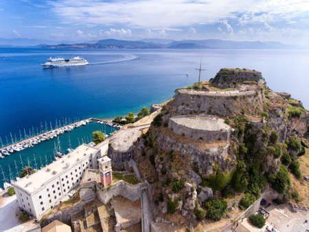 Corfu old fortress aerial view. The old venetian fortress near the capital of Kerkyra Island, now an important tourist attraction.