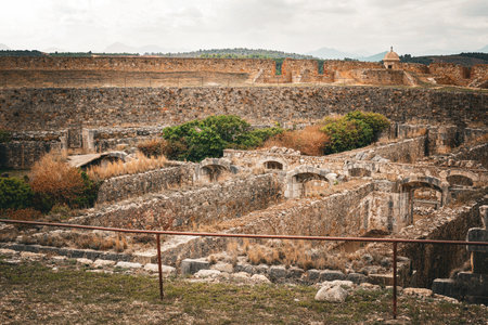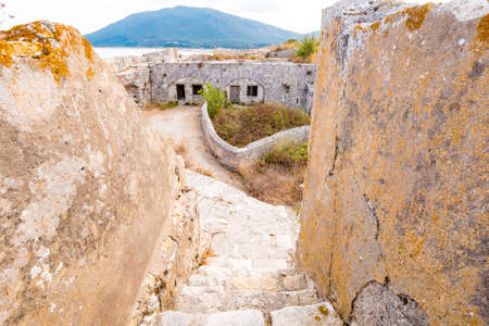 Stone ruins of the Venetian fortress of Agia Maura at the Greek island of Lefkada