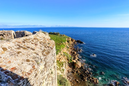 The wall of the Fortezza on Crete, Rethymnon city. Greece.