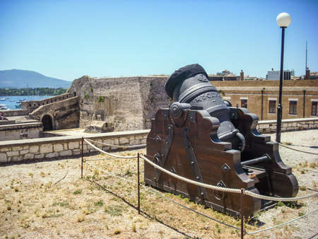 year 1684 old mortar medieval mortar in the Old Fortress of Corfu Town, Greece.