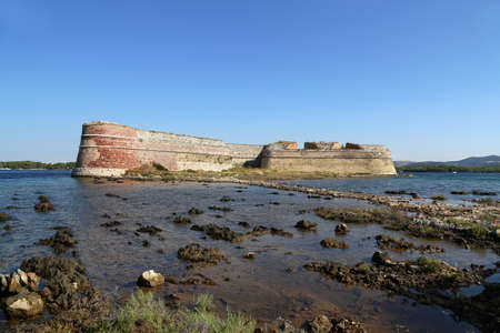 Menorca, Spain - October 13, 2019: View of Fortaleza de La Mola, the biggest European fortresses built in the 19th century on Menorca. Baleares, Spain