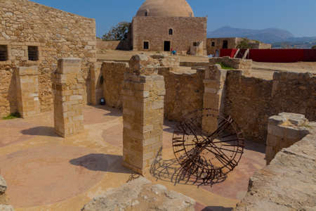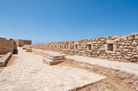 Rethymno, Greece - July 30, 2016: The Complex of Magazines in Fortezza of Rethymno. The Fortezza (from Italian for fortress) is the citadel of the city of Rethymno in Crete, Greece. It was built by the Venetians in the 16th century, and was captured b