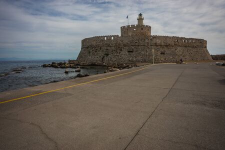 Saint Nicholas Fort guards the Mandraki harbour in Rhodes city, capital of Rhodes island in Greece.