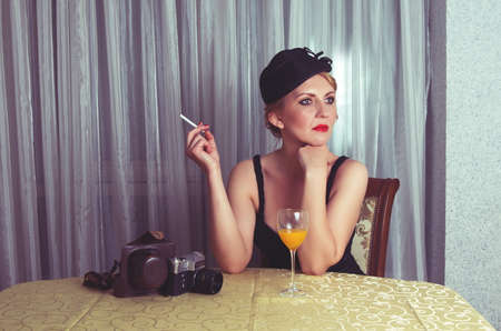Vintage woman portrait with cigarette