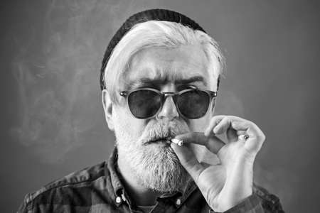 Portrait of a senior man with grey hair and beard in a vintage interior
