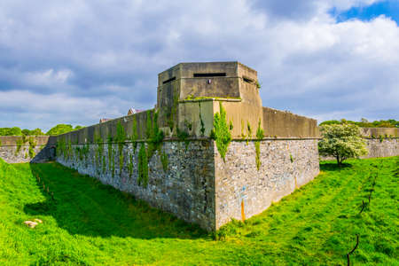 Falmouth, Cornwall, England - July 25, 2018:The Half Moon Battery at Pendennis Castle, a fortress that has protected Cornwall from invasion for 450 years, Falmouth, UK